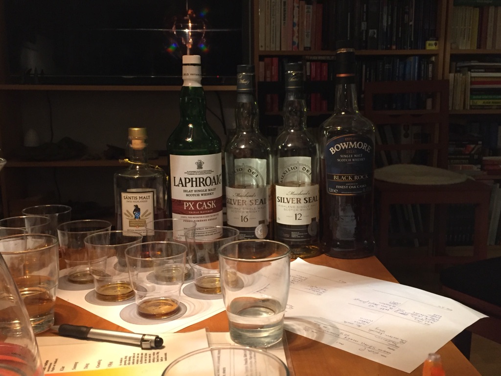 Igår kväll tog sig en liten grupp ut till Eva, jag var där en kort stund för att lämna lappar och hämta upp 5 sorters whiskyprover.