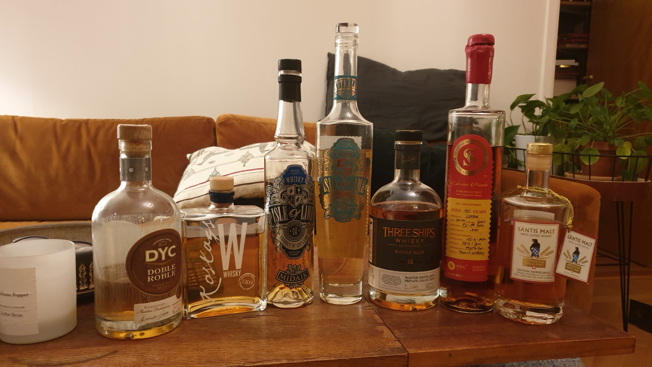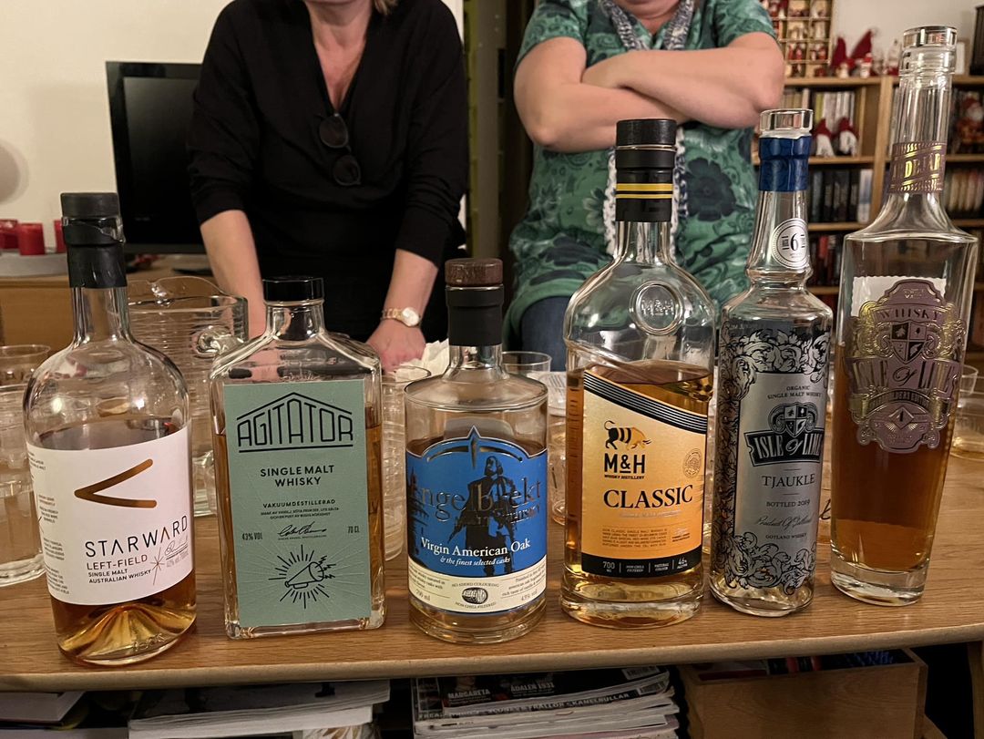Vi provade 4 nya sorter hemma hos henne, sedan tog vi en konstig Indisk whisky som 5 sort (den nämns vid namn i avskräckande syfte).
